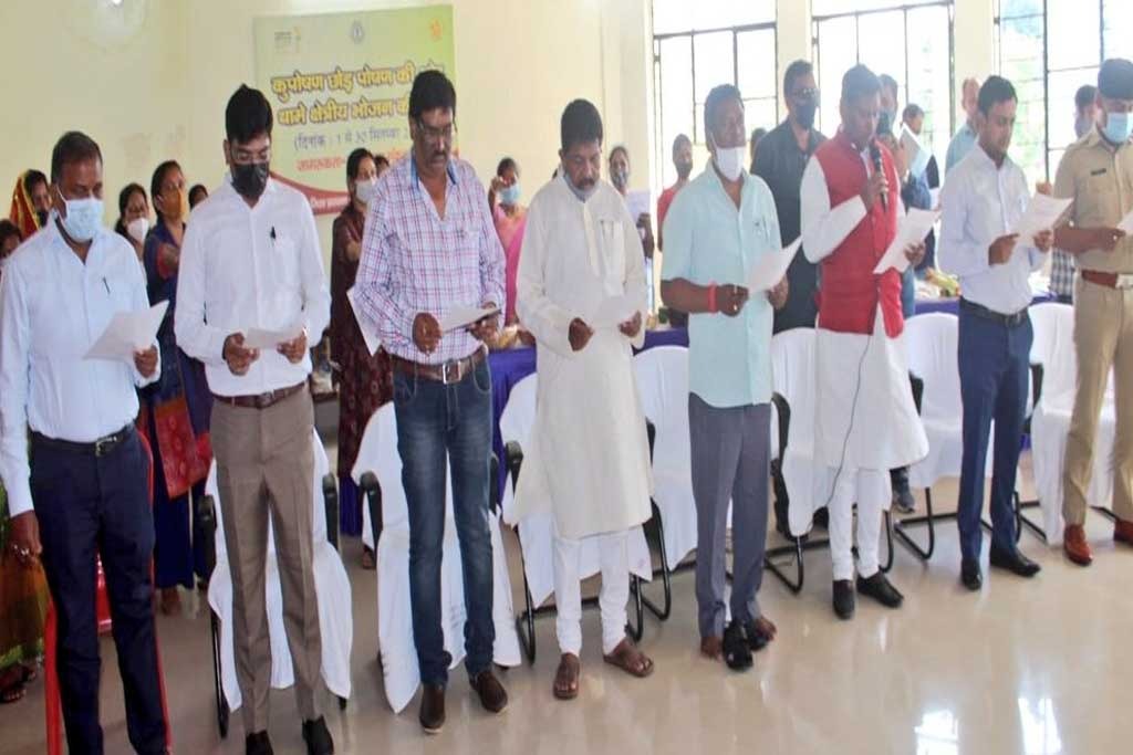 खूंटी: केंद्रीय मंत्री और खूंटी के सांसद अर्जुन मुंडा ने शनिवार को समाहरणालय सभागार में सही पोषण देश रौशन की शपथ अधिकारियों और जन प्रतिनिधियों को दिलायी। पोषण अभियान के तहत सही पोषण देश रौशन के संदेशों को साझा करते हुए खूंटी के विधायक नीलकंठ सिंह मुंडा, तोरपा के विधायक कोचे मुंडा, पुलिस अधीक्षक आशुतोष शेखर, उप विकास आयुक्त, अनुमण्डल पदाधिकारी सहित अन्य जनप्रतिनिधियों व अधिकारियों ने शपथ ग्रहण कर उचित पोषण का संकल्प लिया। इस दौरान केंद्रीय मंत्री ने पौष्टिक आहार युक्त स्टॉल का निरीक्षण किया।