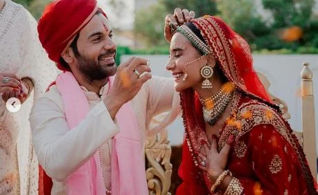 राजकुमार राव और पत्रलेखा ने आखिरकार सोमवार (15 नवंबर) को शादी के बंधन में बंध गए. दोनों की शादी की तस्वीर सामने आ गई है जिसमें दोनों बेहद ही प्यारे लग रहे हैं. इन तस्वीर को राजकुमार राव ने अपने इंस्टाग्राम पर शेयर किया है. लाल जोड़े में पत्रलेखा बेहद खूबसूरत लग रही हैंं. वहीं राजकुमार राव व्हाइट कलर की शेरवानी और लाल पगड़ी में नजर आ रहे हैं. दोनों की केमिस्ट्री देखने लायक है.